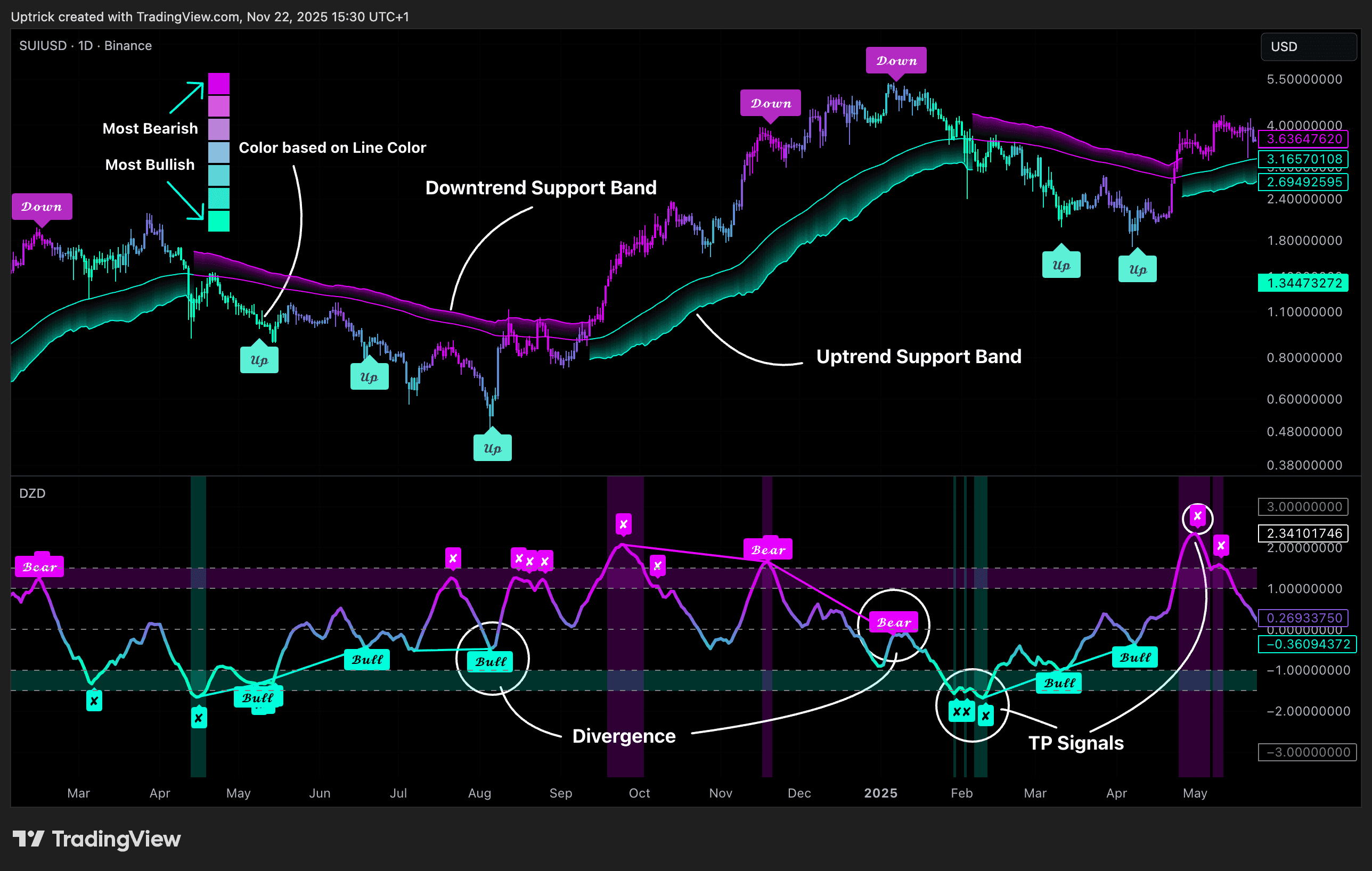 ➜ Any Latest Signal: Colors based on the most recent signal (TP or divergence)