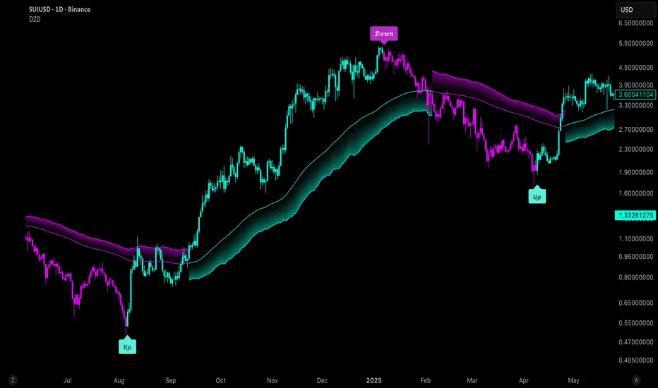 ATR-based dynamic bands that adapt to slope direction and offer real-time visual zones for support and resistance within trend structures.